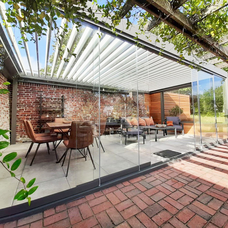 • Un cerramiento que se combina con puertas de cristal correderas o batientes.
